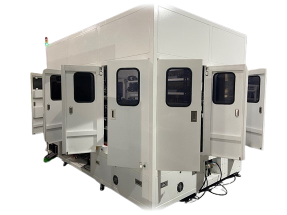 雙片進料正反面飛拍視覺辨識、靜電離子除塵、24Bin分OUT槽數、極高產能UPH=1200 pcs